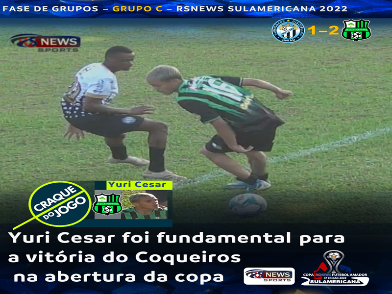 Na partida deste domingo a tarde pela abertura da RSNEWS SULAMERICANA 2022, 3ª edição, Nova Era de Pitangui enfrentou o Coqueiros de Pitangui, pelo grupo C, na Sete Vila do Ouro, atualmente a cidade de Pitangui.A partida foi realizada no Estádio Homero Silva, conhecido como Campo do Pec, a arbitragem foi da cidade de Pará de Minas com Rafael Saraiva no apito com os assistentes Cleber Batista e Carlos Alberto Silva. O Nova Era abriu o placar com Guilherme ( Dinamite) numa bela cobrança sem chances para o goleiro Guilherme que não pode fazer nada aos 35 minutos do 1º tempo. No 2º tempo, com substituições em ambas equipes, o Coqueiros começou a gostar do jogo, o atacante Yuri Cesar aos 7 minutos do 2º tempo empatou a partida. Aos 41 minutos do 2º tempo, uma penalidade assinalada por Rafael Saraiva, Yuri Cesar bateu sem chances para o Goleiro do Nova Era, fazendo 2 a 1 para o Coqueiros e decretando o placar final, 2 a 1 Coqueiros. A partida teve transmissão dos canais da RS NEWS , como RS NEWS SPORTS e RS NEWS PPW, momentos antes da partida, a direção do canal disponibilizou nas redes sociais do canal como no facebook ( Rsnews Saraiva ) e youtube ( RS NEWS SPORTS). A organização da copa disponibilizou imagens de dois lances em que saíram gol. O 1º lance foi na falta que originou o gol do Nova Era e o pênalti assinalado no 2º gol do Coqueiros. Todas as partidas da copa serão transmitidas pelas canais da RS NEWS SPORTS. Acompanha o vt da partida no youtube, segue o link abaixo.