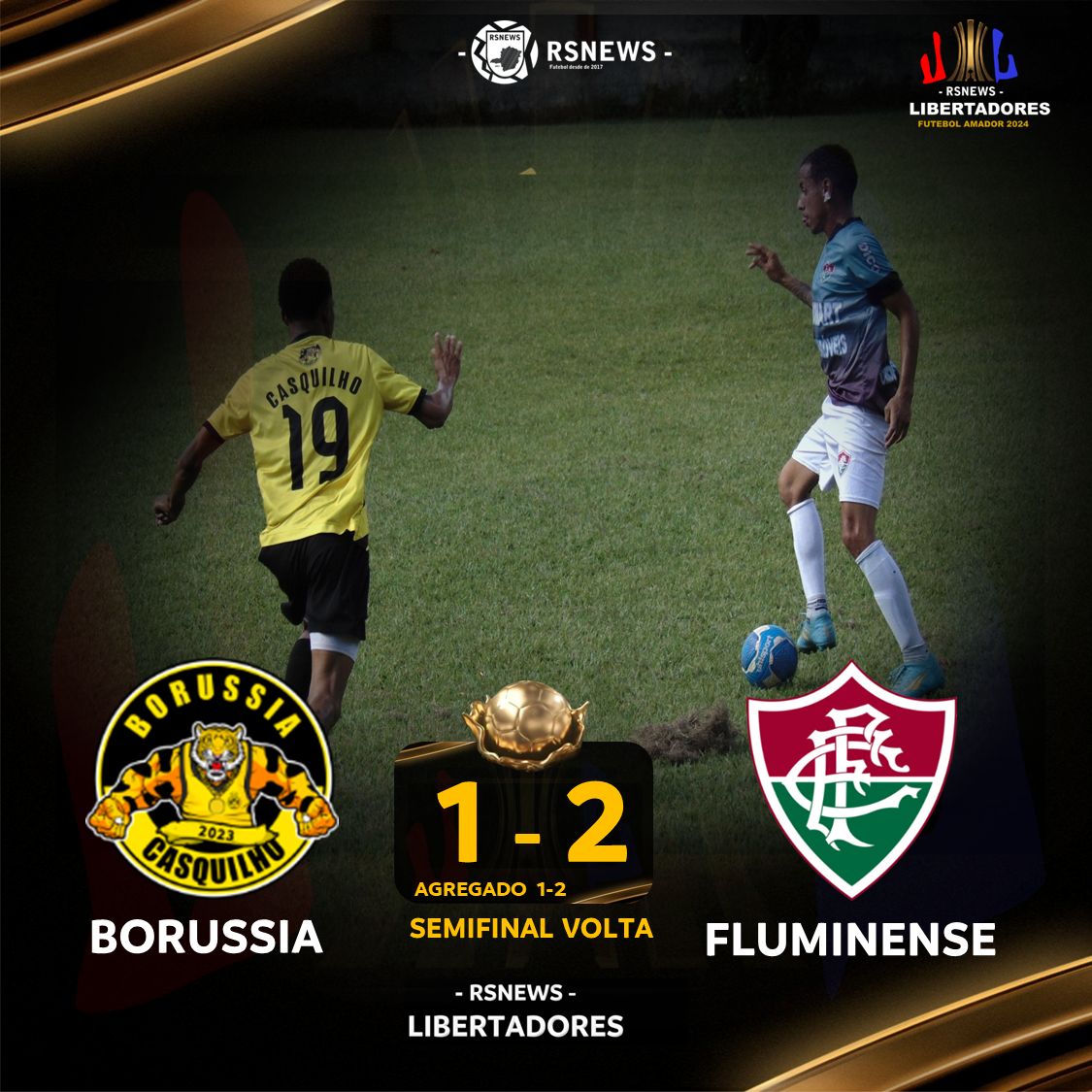 Partida realizada no domingo em Conceição do Pará, pela semifinal partida de volta da RSNEWS LIBERTADORES 2024. Fluminense abre 2 a 0 com Carlos Ezequiel, Borussia diminuiu. O Fluminense venceu por 2 a 1 e garantiu vaga para decisão da RSNEWS LIBERTADORES 2024. Na decisão o Fluminense enfrenta o Nova Era B de Pitangui. A Partida de ida em Conceição do Pará e a partida de volta em Pitangui.