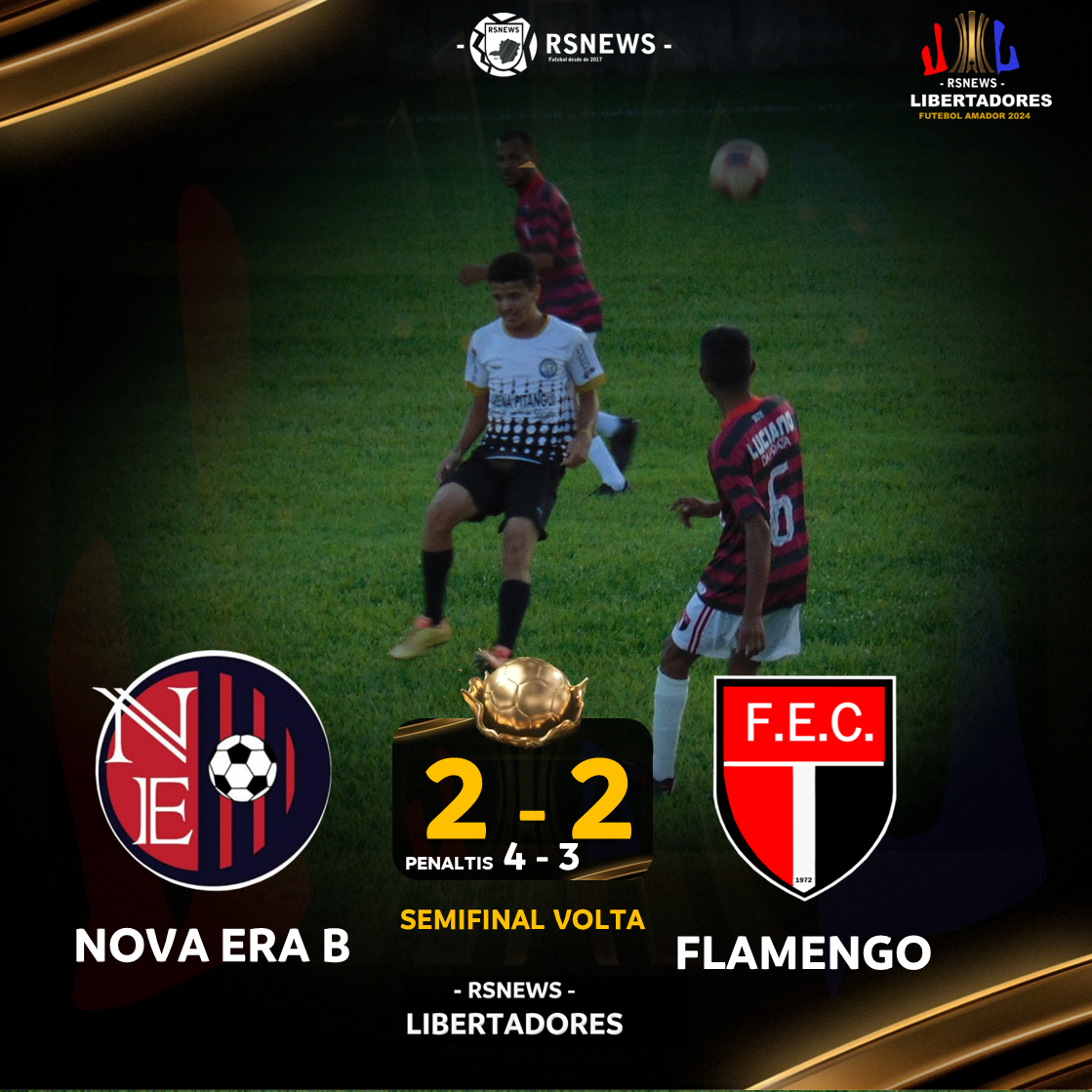 Com o placar favorável tudo encaminhava para uma goleada a partida. Mas o que aconteceu foi o inverso, Weskley Nobrega no chute de fora da área diminuiu para o Flamengo ainda no 1º tempo. No 2º tempo logo no começo, Elia Franco de pênalti deixou tudo igual em 2 a 2. Com o resultado de empate na partida de ida em 1 a 1, a decisão foi para as penalidades, o Nova Era B venceu por 4 a 3 e garantiu vaga para a decisão da RSNEWS LIBERTADORES 2024.