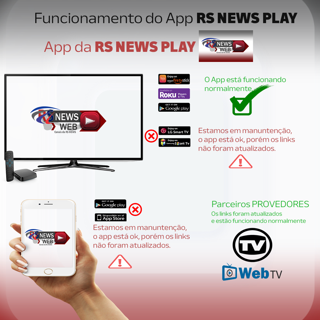 Em breve todos os Apps da RS NEWS PLAY estarão normalizados.