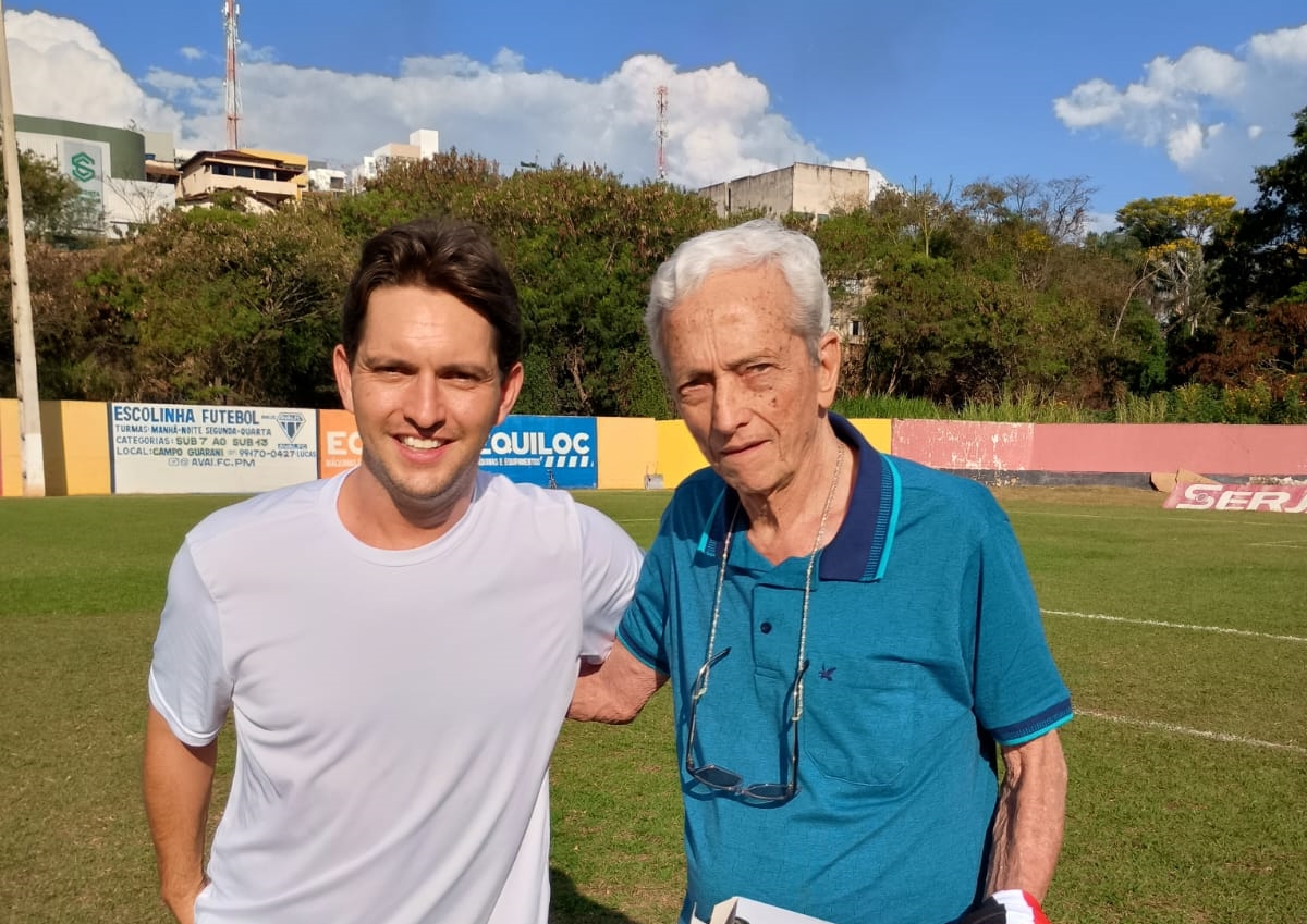 Ex narrador Jesus Geraldo de Oliveira da Radio Santa Cruz de Pará de Minas é homenageado no amistoso de veteranos, entre Guarani e Rio Branco, no 166º aniversário de Pará de Minas.