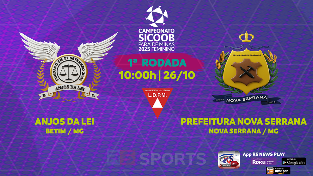 Na parte da manhã, as 10:00h, o Anjos da Lei de Betim enfrenta o Prefeitura de Nova Serrana, a tarde, as 15:30h, tem Charuri BR Super de Pará de Minas contra o Cruzeiro do Sul de São José da Varginha. Ambas partidas serão realizadas no Estádio José Maria de Castro, campo do São Francisco. Ambas partidas terão transmissão da RS PLAY TV no youtube e também pelo App RS NEWS PLAY, no canal RS PLAY TV. O App RS NEWS PLAY encontra-se nas plataformas Android TV, Android mobile ( celular), Smart TV Roku e Amazon Fire Stick, totalmente gratuito, sem a necessidade de login e senha. Tá no coração está na RS SPORTS, torcemos juntos.