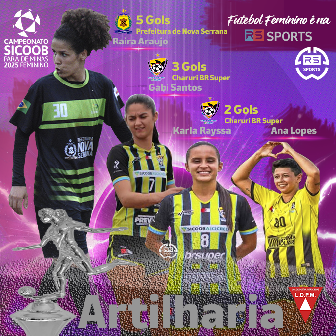 Após duas rodadas do Campeonato Sicoob Feminino 2025 que está sendo realizado na cidade de Pará de Minas, já tem atleta se destacando na artilharia. No próximo domingo, Charuri BR Super de Pará de Minas e Prefeitura de Nova Serrana vão se enfrentar a partir das 10h00, e a partida, que vale a liderança e também a classificação antecipada para as semifinais, terá transmissão dos canais da RS SPORTS.Nas 4 partidas realizadas do campeonato, Charuri e Nova Serrana entraram em campo duas vezes cada, venceram as suas partidas, e estão com 6 pontos. Lider e vice-líder, o critério de desempate é o saldo de gols. Charuri possui um saldo de 10 gols, enquanto a equipe de Nova Serrana possui saldo de 3 gols.O Charuri ainda não levou gols na competição, enquanto Nova Serrana sofreu 3 gols. Na artilharia, a atacante de Nova Serrana, Raira Araújo, fez 5 gols em duas partidas, média de 2,5 gols por partida.Logo em seguida, com 3 gols, está a atacante Gabi Santos do Charuri, e também com 2 gols cada, Karla Rayssa e Ana Lopes, da equipe do Charuri. É muito cedo para dizer sobre estes números e a projeção para as rodadas seguintes. Neste domingo teremos a 3ª rodada, e Charuri e Nova Serrana irão fazer a sua 3ª partida na competição.Anjos da Lei de Betim e Asa Branca de Sarzedo irão para a 2ª partida, ambos perderam na estreia, e esta rodada é importante para as equipes. Nesta rodada, o Cruzeiro do Sul de São José da Varginha vai folgar e está com duas derrotas. Quando se fala de futebol, tudo pode acontecer.